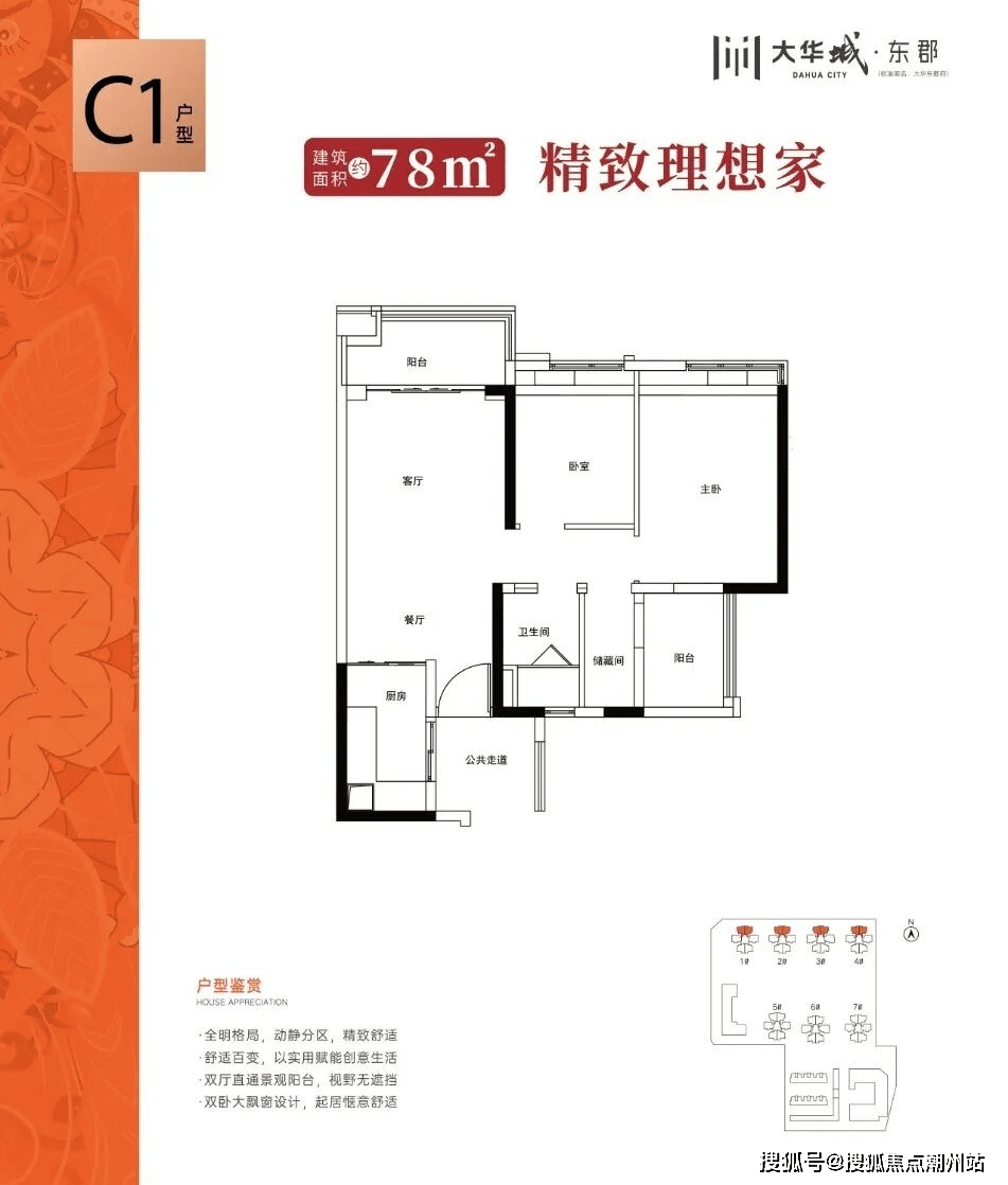 1. C1户型 78㎡2+1房 |两厅一厨一卫
