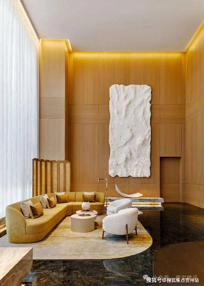 客餐厅逾11米宽幕玻璃景观面,将深超总的都市谧境与湿地的层翠,悉数纳入日常画幅。中岛以整块“丝绸之路”奢石铺就,磅礴的纹理与窗外潮汐形成无声对话。