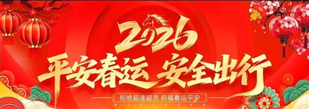 春运期间及春节假期,请您时刻注意交通安全,提前了解天气及路况,遵守交通规则,安全驾驶、文明出行。