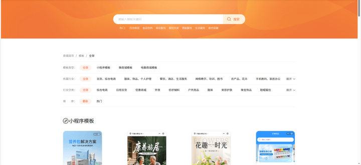 1、我们来到这个工具的官网首页后,点击【导航栏——模板】并选择行业,就能进入模板库了,这里的模板有很多,覆盖的行业也是挺多的,大家按需选择。如果你想快速定位到自己需要的模板,可以在搜索栏里输入关键词进行搜索,也可以直接在搜索栏下方的标签导航栏进行选择。