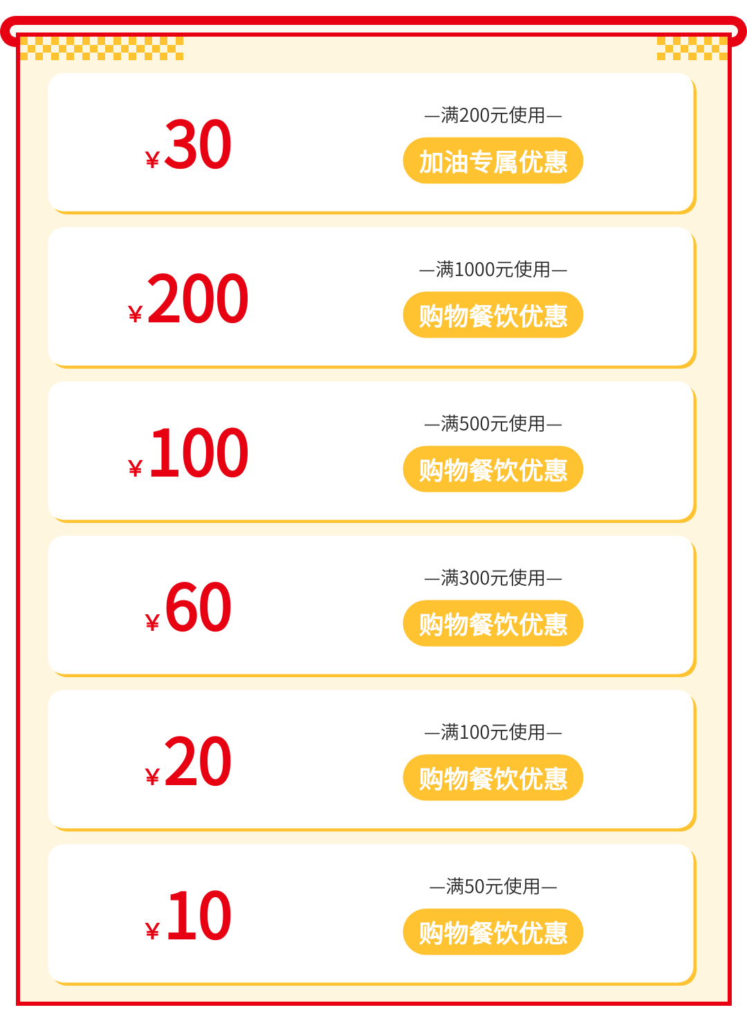 此次发放的职工惠民券为满减型消费券,包含“满1000减200”“满500减100”“满300减60”“满200减30”“满100减20”“满50减10”六档电子消费券。符合条件的职工可通过“云闪付”APP、贵州银行APP、“爽贵阳”APP、“贵阳工会”微信公众号等指定平台入口领取,领取规则为先到先得、发完即止。消费券有效期为7天,最晚不超过3月4日。此轮活动中,每名消费者最高可领取、核销每个档次的消费券各1张,最多可获420元优惠;领取未核销的消费券过期作废,不予补发、退回;单笔消费仅限核销1张消费券;使用时段为每日06:00至23:59;逾期票券将自动退回资金池,并于次日继续滚动发放。