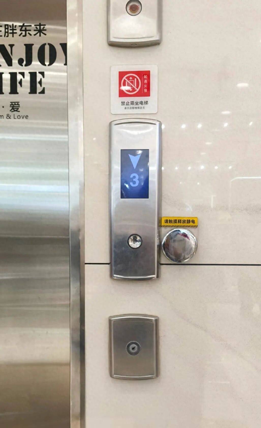 网友拍摄的视频显示,在直梯电梯按钮旁有一个圆柱金属物体,上面写道:请触摸释放静电。有顾客在测试后发视频称,“亲测有效”,在摁电梯之前碰了一下,的确没有再产生静电。