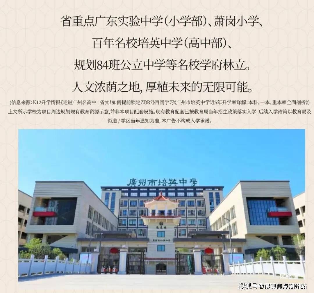 教育配套堪称顶级,项目虽然没有配建学校,但参照周边楼盘,(全地段摇号)有萧岗小学/与广东实验中学(小学部)、百年培英中学(高中部)为邻,构建全龄段优质教育矩阵。省实小学部传承标杆基因,培英中学近年高考升学率稳居90.3%高位,为孩子成长奠定深厚文脉(具体入读政策以当年教育局公布为准)。