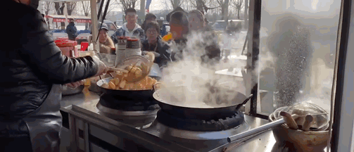所谓烟火气,是油条在滚油中滋滋作响、是馄饨刚出锅时冒起的热气、是商贩与顾客的讨价还价、是鲜绿的菜叶、是摊位间狭窄的通道……