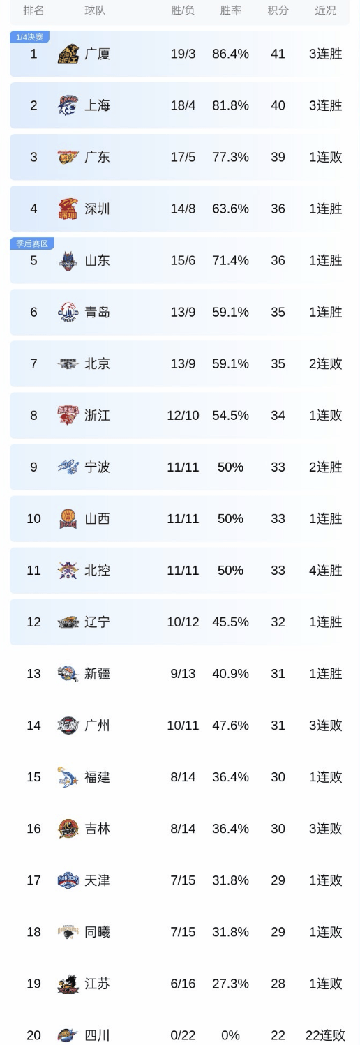 北京时间2月1日晚,CBA联赛展开多场比赛的争夺,其中广东队在客场对阵宁波。赛前广东队5连胜,排名积分榜第3位,为总冠军而战,而宁波仅排名第12位,两支球队的实力有差距。没想到这场比赛打得如此激烈,广东队意外翻车。CBA一夜2场冷门!广东+北京都输球,四川22连败,最新积分榜出炉。