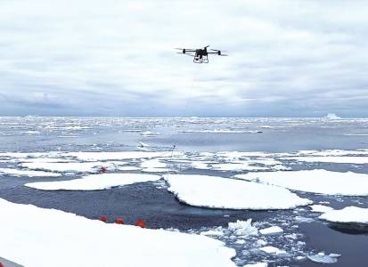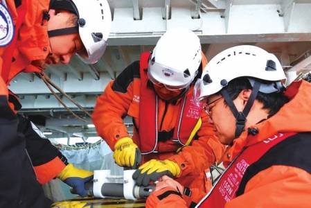 船时1月25日4时许。“抓住了!”随着一声惊呼,无人机抛下的锚钩成功捕获“锚碇式潜标观测系统”(俗称潜标)缆绳。“雪龙”号上的考察队员们应声齐聚船尾,像拔河一样将沉重的浮球组拉上甲板。