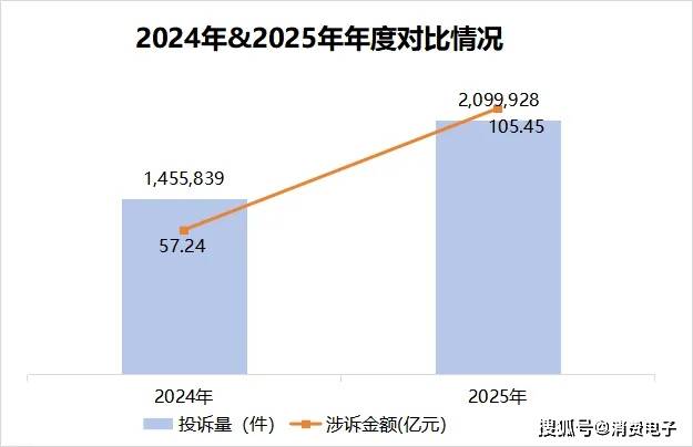 2025年全年,消费保累计收到消费者投诉2,099,928件,同比增长44.24%,累计涉诉金额高达105.45亿元,有效投诉解决率为33.42%,为消费者挽回直接经济损失近32亿元。