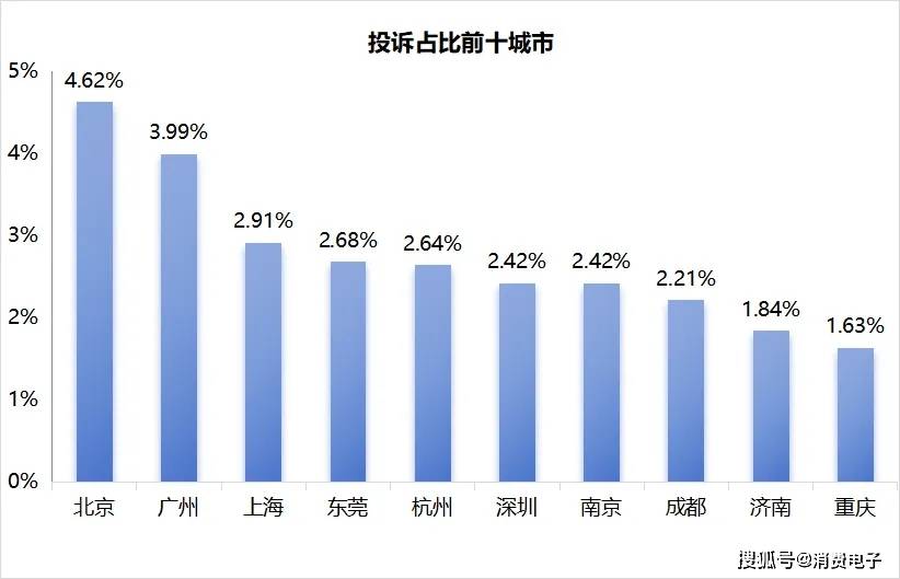 据统计,2025年投诉用户聚集城市中,北京以4.62%的投诉占比位居首位;广州和上海分别排名第二、第三,占比为3.99%、2.91%。