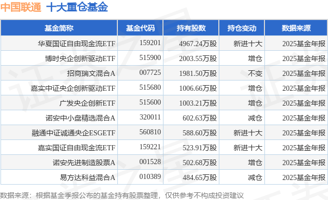 重仓中国联通的前十大公募基金请见下表: