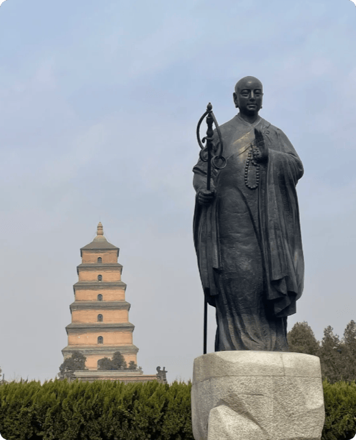 D2:大兴善寺→西安博物馆(周二闭馆)→明城墙→大唐不夜城;含中餐;住西安。早上9点,霞霞准时来酒店接我们,第一站去大兴善寺。说实话,一开始我对寺庙没兴趣,逛完却彻底改观。这座藏在小寨商圈的古刹闹中取静,免费开放且无需预约,山门一进,瞬间隔绝都市喧嚣,院内古木参天、禅意十足,我们沿长廊漫步,系了祈愿带,心里格外宁静。