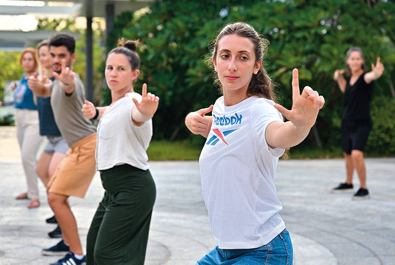 外国学员在海南省三亚市中医院学习八段锦(2025 年 8 月 7 日摄) 郭程摄 / 本刊