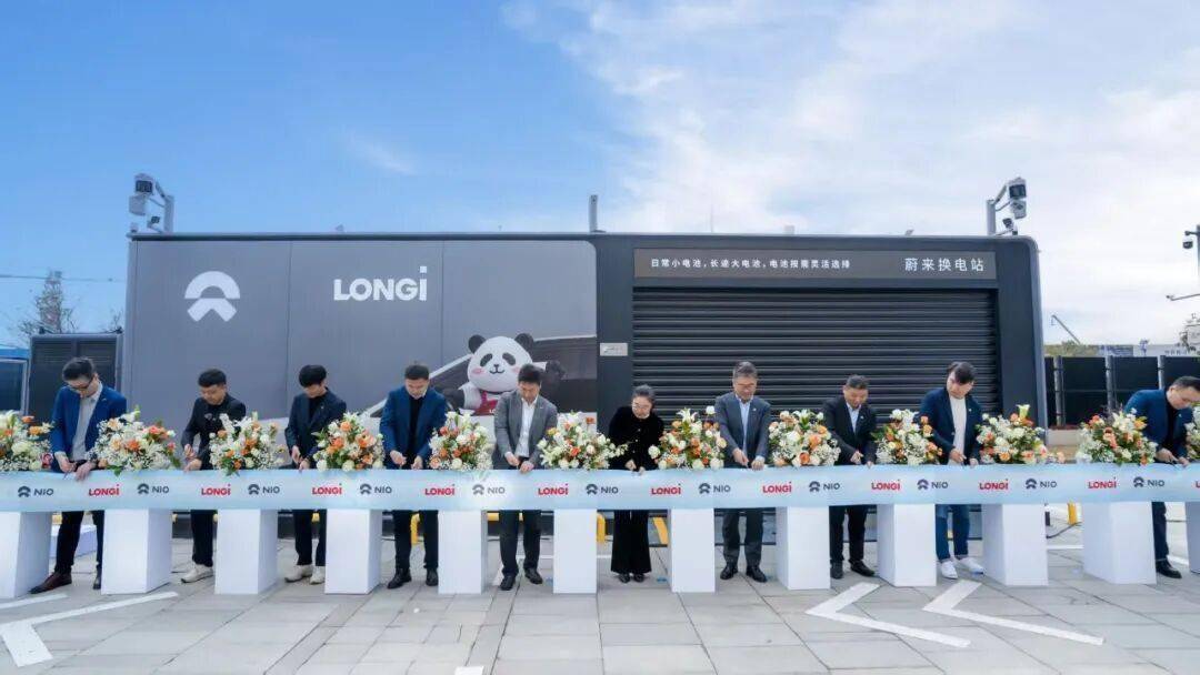 落成仪式上,蔚来ET9于全新落成的光伏换电站完成了首次换电服务。 该换电站顶部全部采用隆基专为蔚来定制的Hi-MO X10全黑组件,搭载行业领先的BC电池技术,组件转换效率高达24.3%,确保了换电网络电力供给的绿色化与高效化。