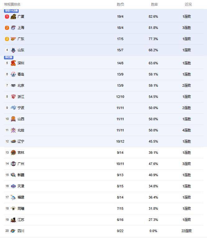看下CBA积分榜最新排名,前3位的广厦、上海和广东遥遥领先后面的球队,山东现在排在第4位已经不稳定了,北京第7位,辽宁第12位。