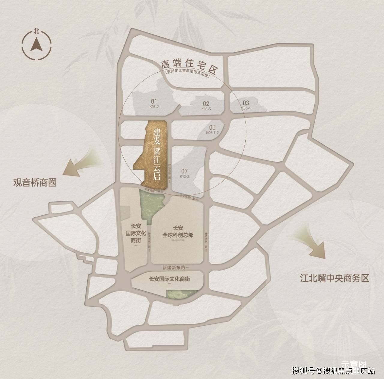 区域内一轴双心三区规划,北接龙头寺公园,南向北滨路江岸生态,形成主城难得城市绿洲。