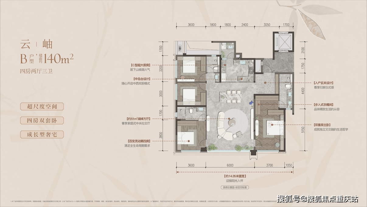 超尺度空间、四房双套卧、成长型奢宅