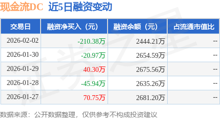 证券之星消息,2月2日,现金流DC(159235)融资买入305.41万元,融资偿还515.79万元,融资净卖出210.38万元,融资余额2444.21万元。