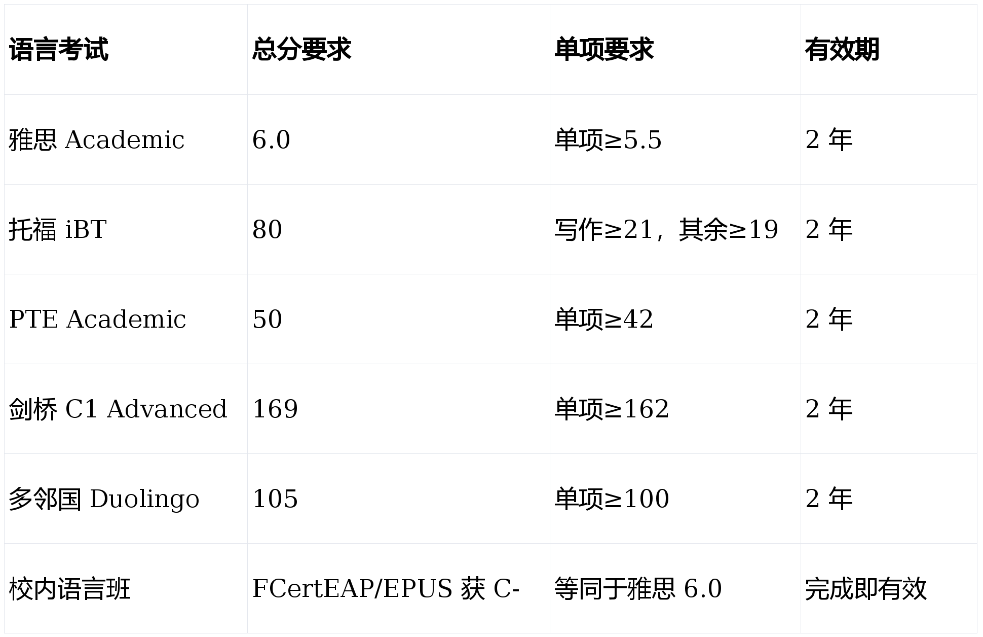 - 工程 / 健康科学:雅思 6.5,单项≥6.0;托福 90,写作≥22
