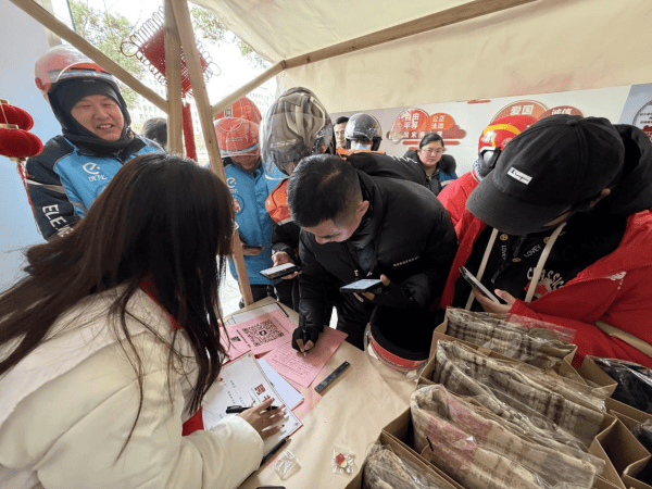 暖心服务站,心愿共守护。“新”春暖心服务站内暖意融融,易拉宝上清晰展示着各项便民服务内容。工作人员为奔波在外的新业态群体递上热气腾腾的热饮,驱走冬日寒意;现场开设居民公约积分卡办理通道,新业态从业者扫码加入社区微信群即可获赠起始积分,轻松开启社区共建之旅。在“骑士微心愿”收集区,骑手们纷纷写下“希望获得子女课后辅导”“想要一套保暖护具”等心愿,社区志愿者逐一记录在册,后续将精准对接资源助力实现。暖心服务与心愿收集的双向互动,让社区与新业态群体的心贴得更近。
