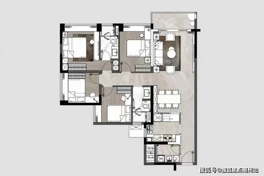 180㎡四房适合有更大居住需求的改善家庭,采用专梯专户设计