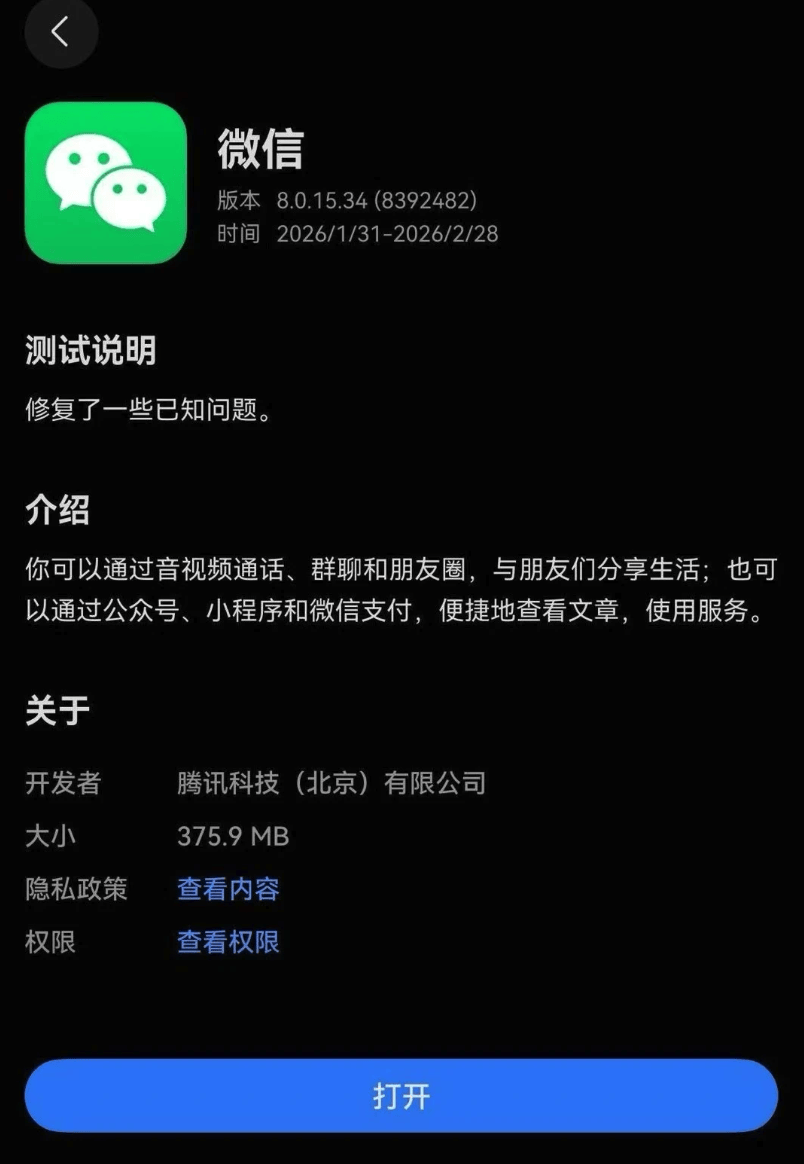 保持微信持续更新,以获取最新体验