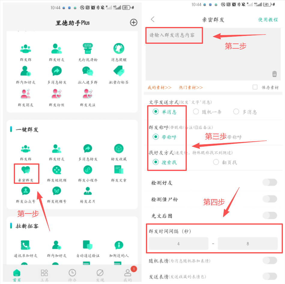 加上想更亲近的发或者多发的话,那就可以试试【里德助手plus】的亲密群发或者多消息转发来打辅助呀!
