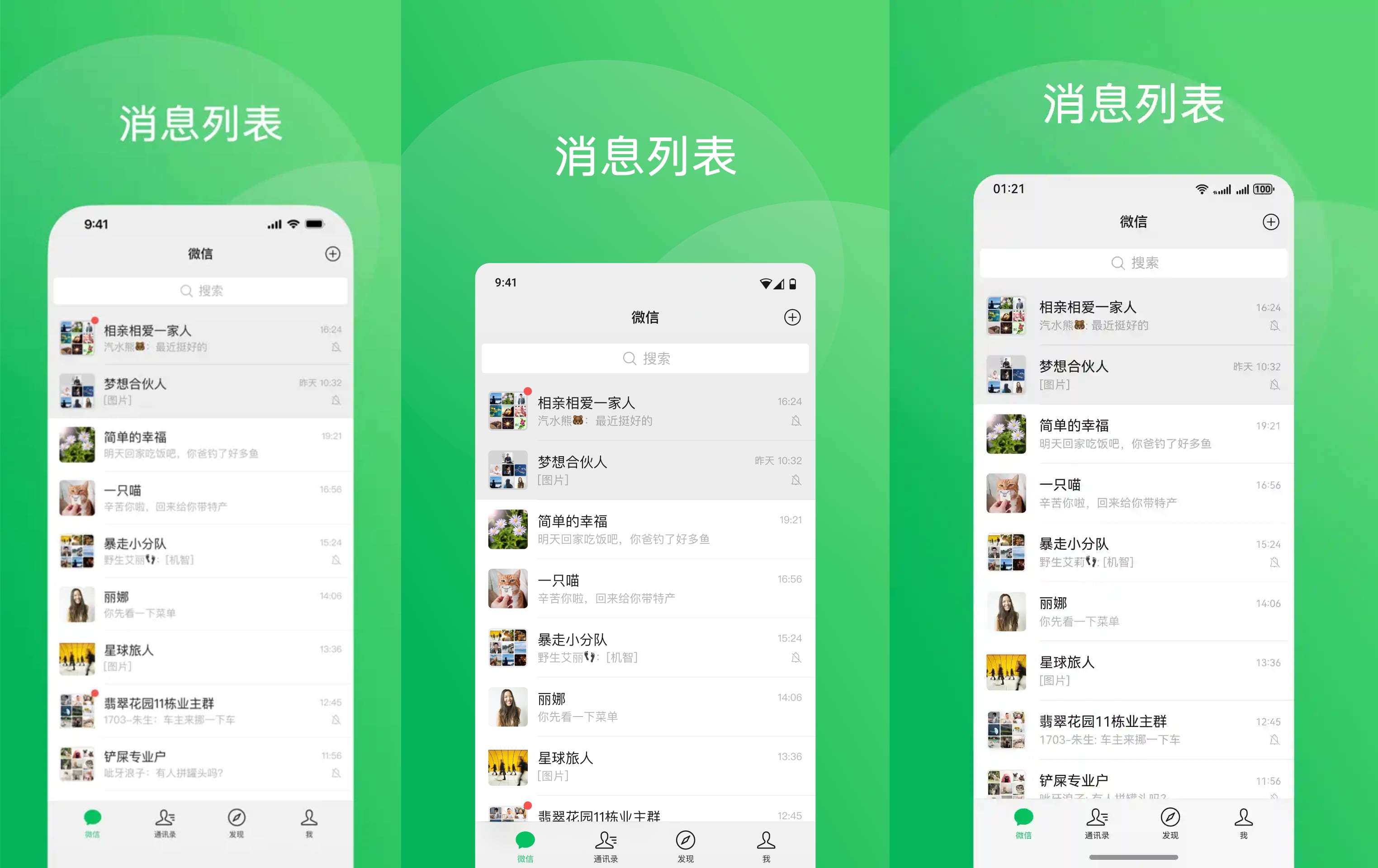 iOS / Android / HarmonyOS 微信对比