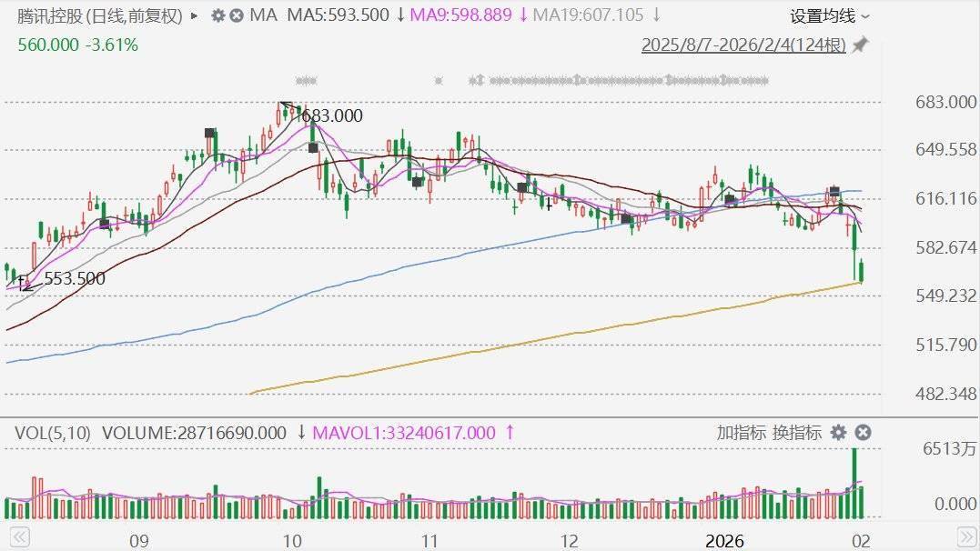 腾讯(0700.HK)今日再度下跌,盘中跌近4%至558港元,为连续第四日下跌,股价创2025年8月12日以来新低。消息面上,微信官宣:对元宝的违规链接进行处置,限制其在微信内直接打开。