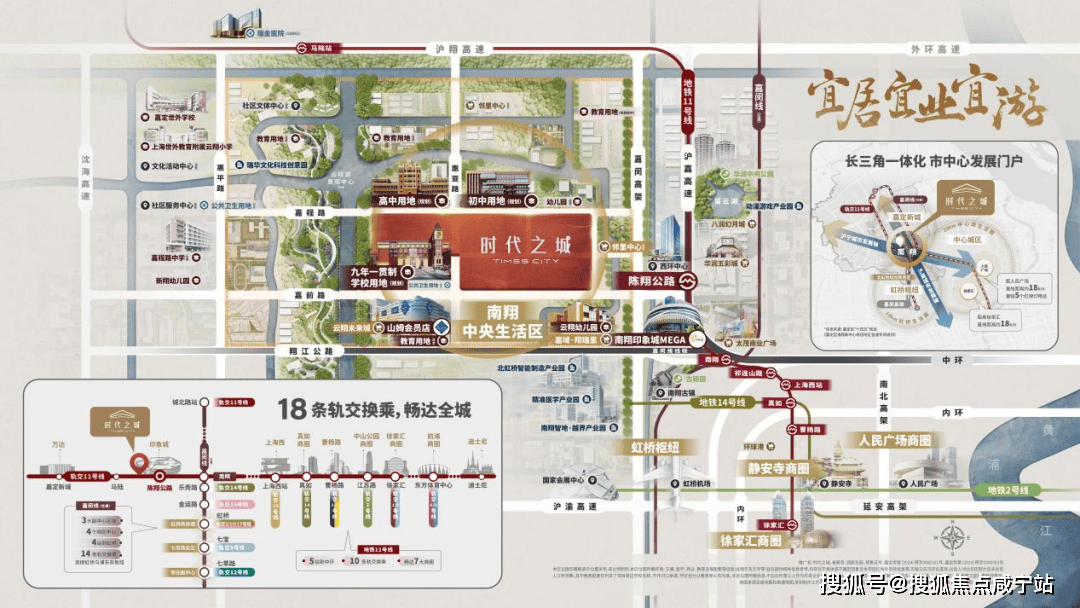 项目地处南翔,紧邻11号线陈翔公路站,嘉闵线(在建)4站直达虹桥枢纽,串联静安寺、徐家汇等核心商圈。