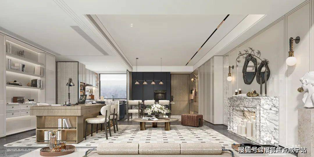 中叠户型四开间朝南,步入玄关即被IMAX级全景落地窗震撼,自然光线与园林景观透过超大玻璃幕墙倾泻而入。
