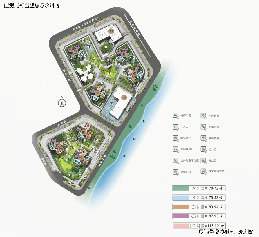 项目整体以塔楼围合式全南向排布,4.5低容积率,宽绰楼间距,户户南向观景,更有片区罕有的纯南向河景视野、雅致中心园林,营造一线亲水的舒居体验,