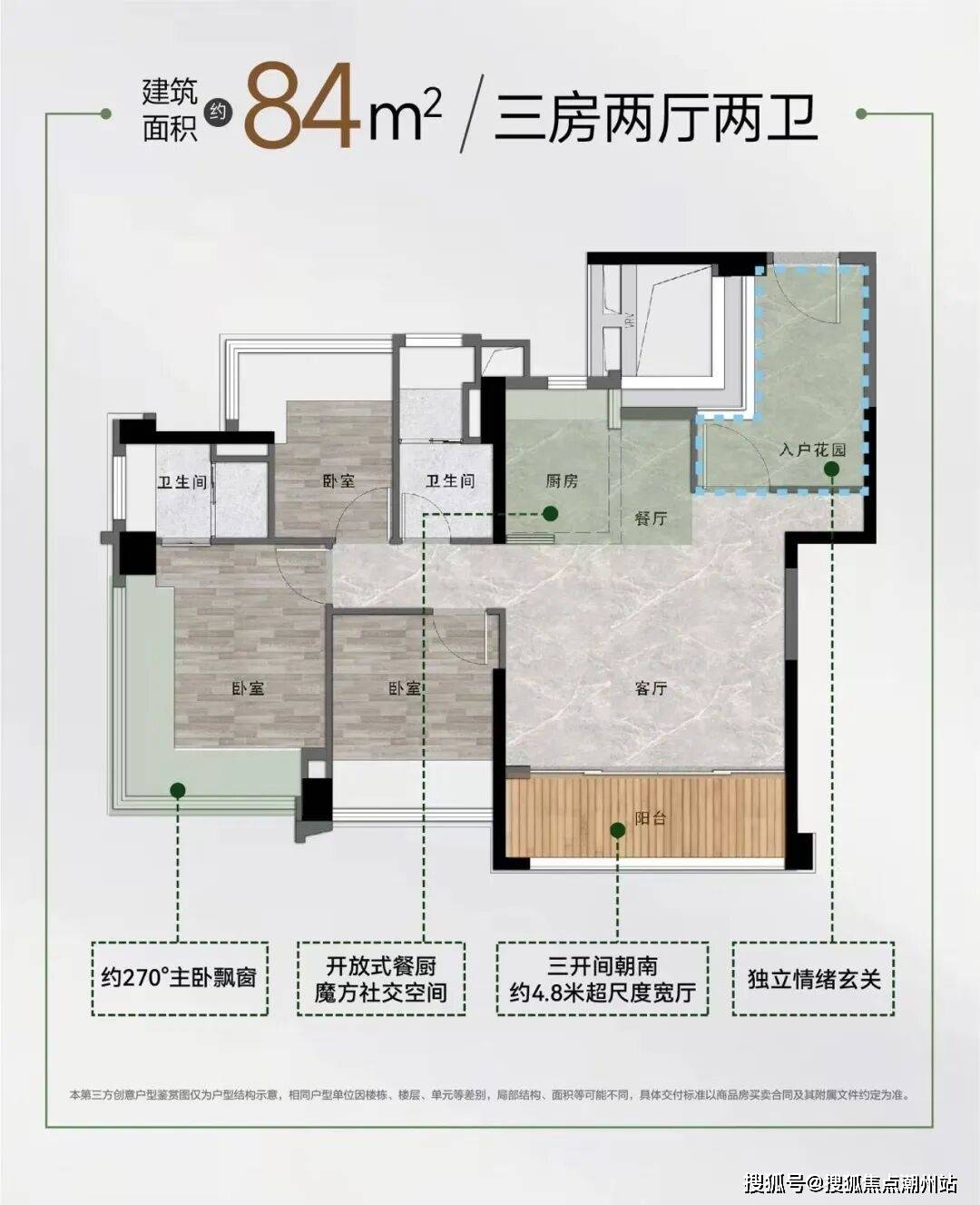 84方的3房,200多万,买新规使用率,超高性价比,3开间朝南,客厅开间尺度4.8米,可隔出一个半封闭书房。