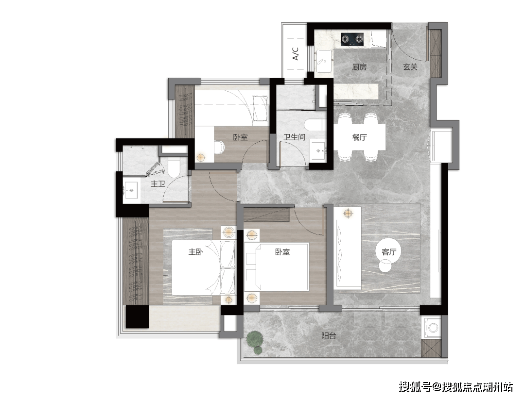 入户花园、6m大横厅,南向面宽达到约16m,主卧270°转角飘窗。