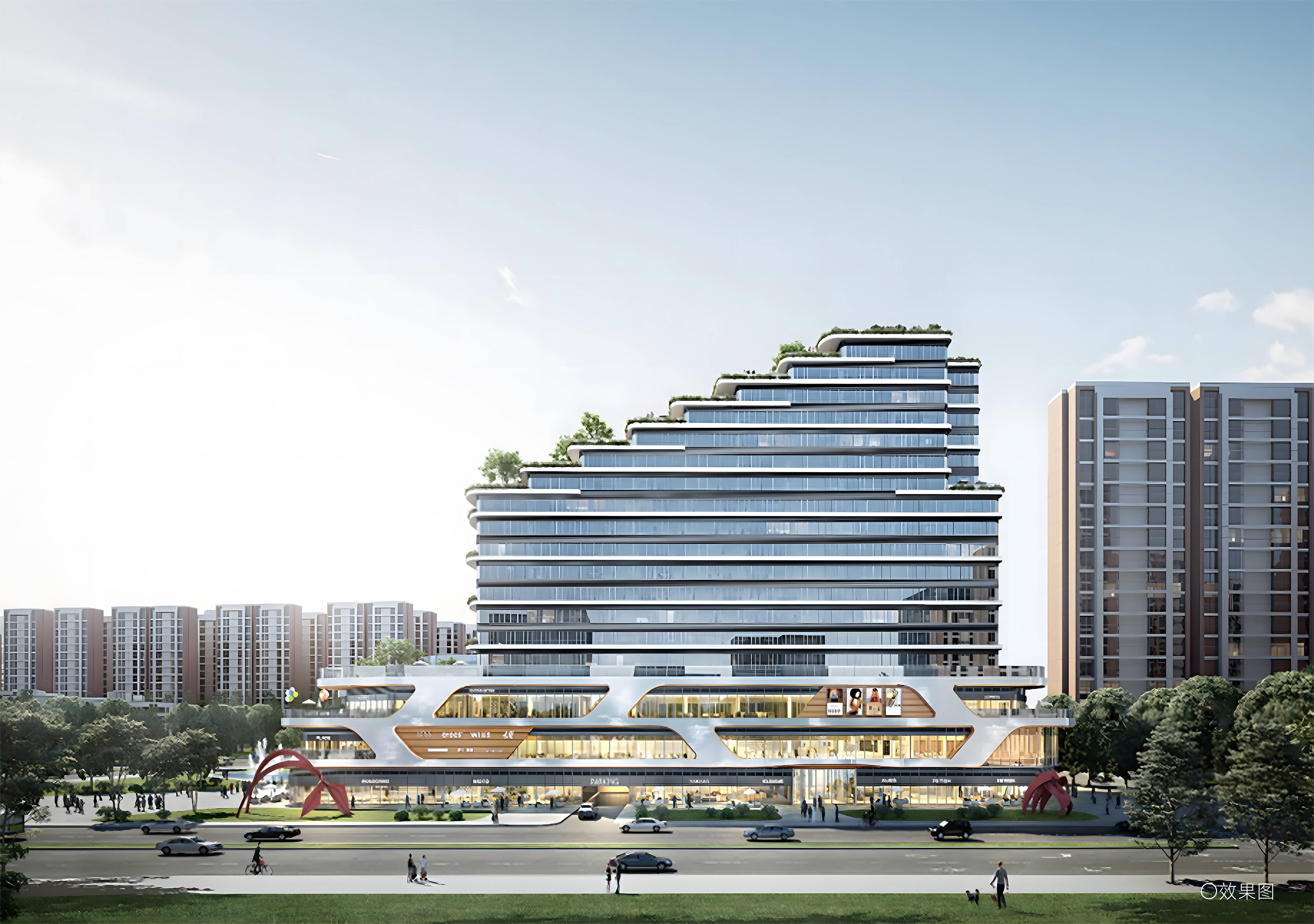 外立面玻璃幕墙+太空铝板装饰,融入邮轮设计理念,呈现精奢大气之感,城南潮流新地标