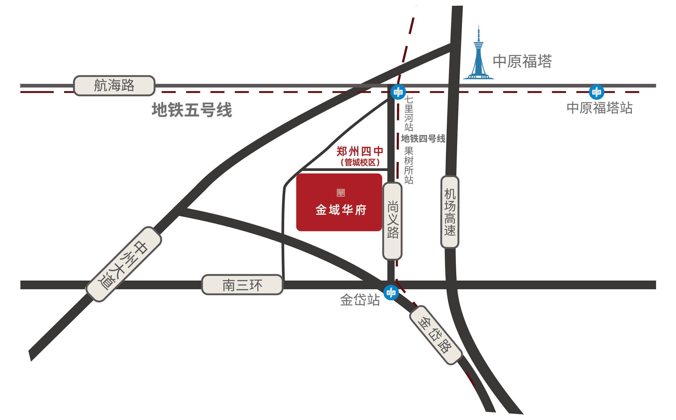 黄金围合区域,中州大道、南三环、机场高速、航海路等多条交通干道环伺