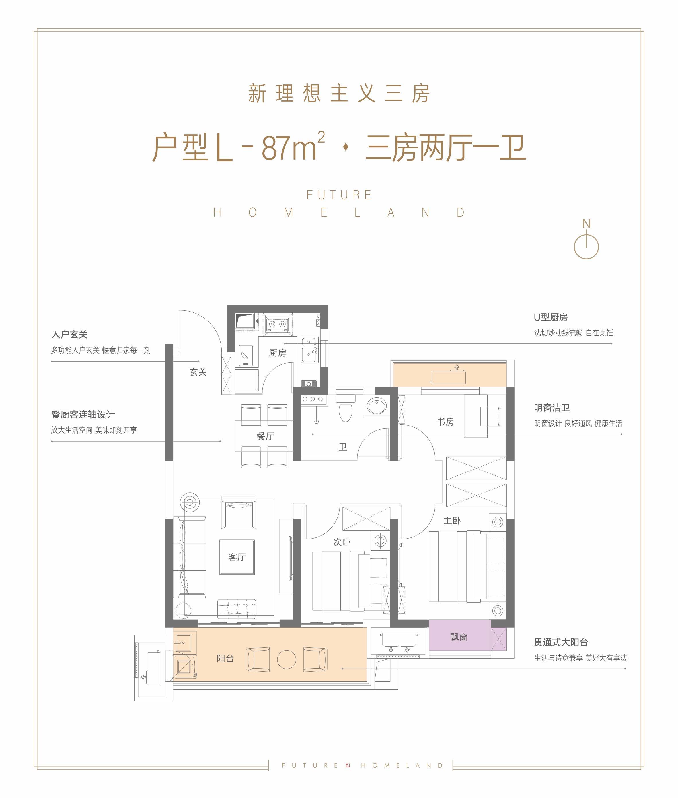 均为边户,采光性好,户型方正,南北通透,三开间朝南、连通式大阳台,北向安静书房,赠送面积大