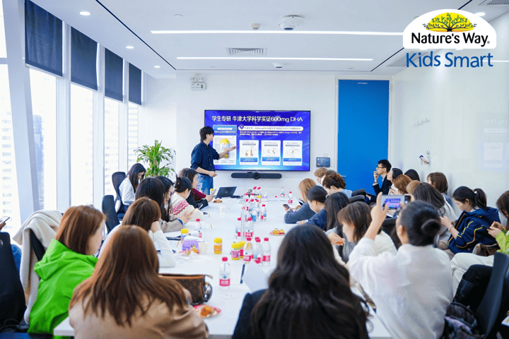 现场展示的明星产品,如脑力佳(PS+DHA复合配方)、专利叶黄素、学生三倍DHA、海藻钙镁锌、VC+锌等,还有中国孩子们很喜欢的奶龙x佳思敏联名款维生素软糖,每一款都对应着明确的科研支撑与场景需求。品牌营养师从原理层面进行的深度培训,将“成册的科学证据”转化为店主们可理解的语言、可应用的实际场景,完成了从“知其然”到“知其所以然”的关键一跃,为后期私域种草、终端推广积累了鲜活的素材。而互动问答环节,好衣库店主积极参与,争相“汇报”学习成果,氛围热烈融洽。
