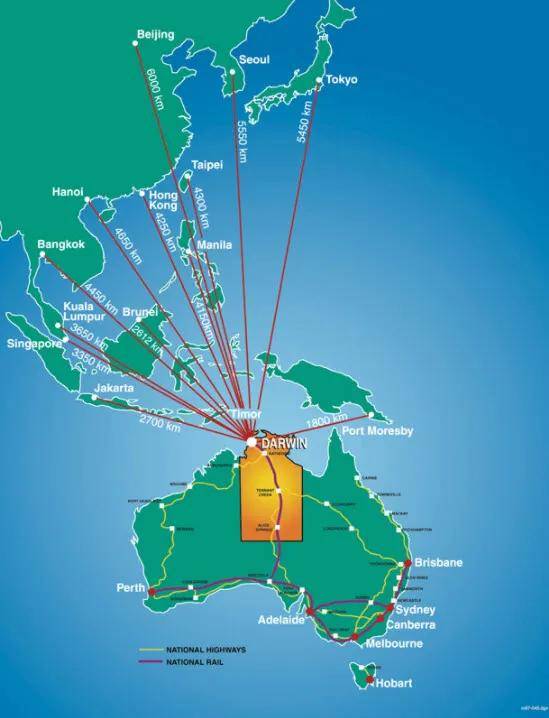 达尔文港坐落于澳大利亚北领地首府达尔文市,是澳大利亚北部最大的深水港,也是连接亚洲与大洋洲的关键航运枢纽。从地理位置上看,它扼守帝汶海与阿拉弗拉海的咽喉要道,距离东南亚仅数百公里,到中国广州的航程比澳东海岸港口缩短7-10天,距南海更是仅有2000-3000公里,堪称“印太航道的十字路口”。