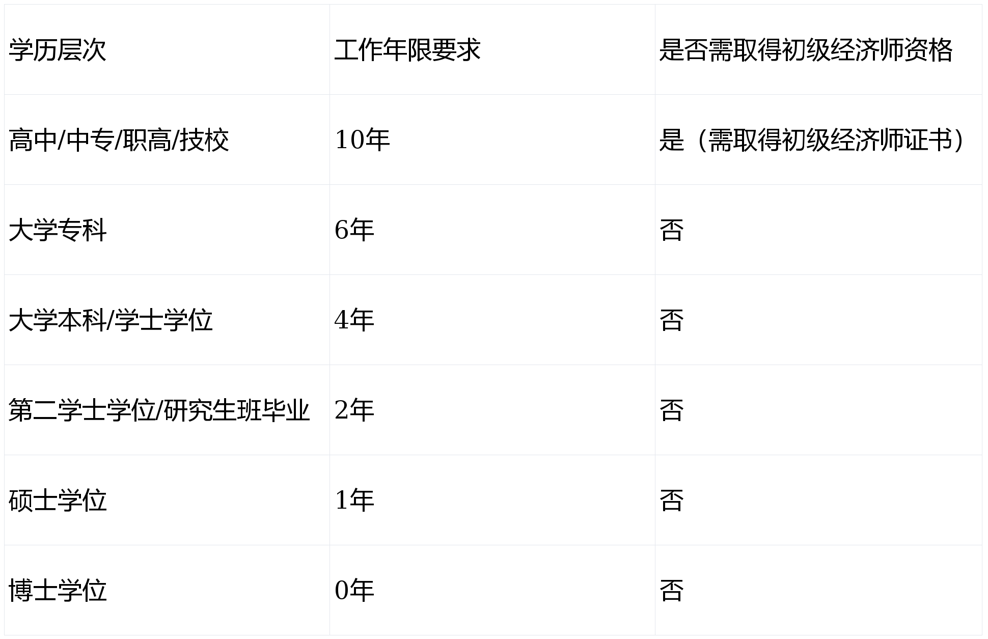 (工作年限计算截止时间为考试当年12月31日,需与报考专业相关或从事经济类工作)