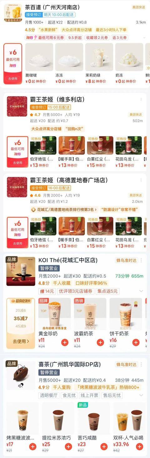 另据媒体在北京某商圈搜索查询发现,多家奶茶门店疑受活动爆单影响,显示“本店已休息”。