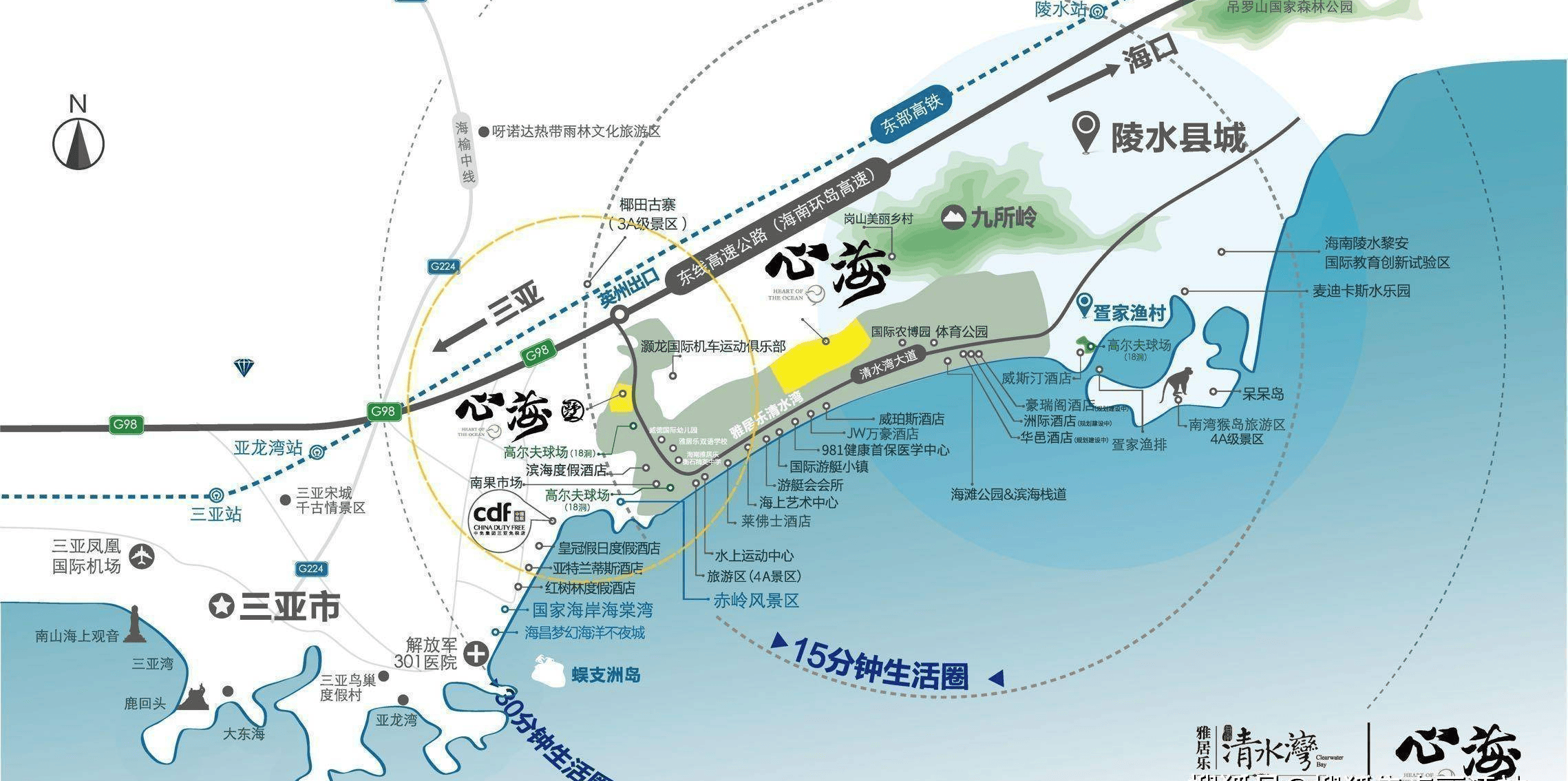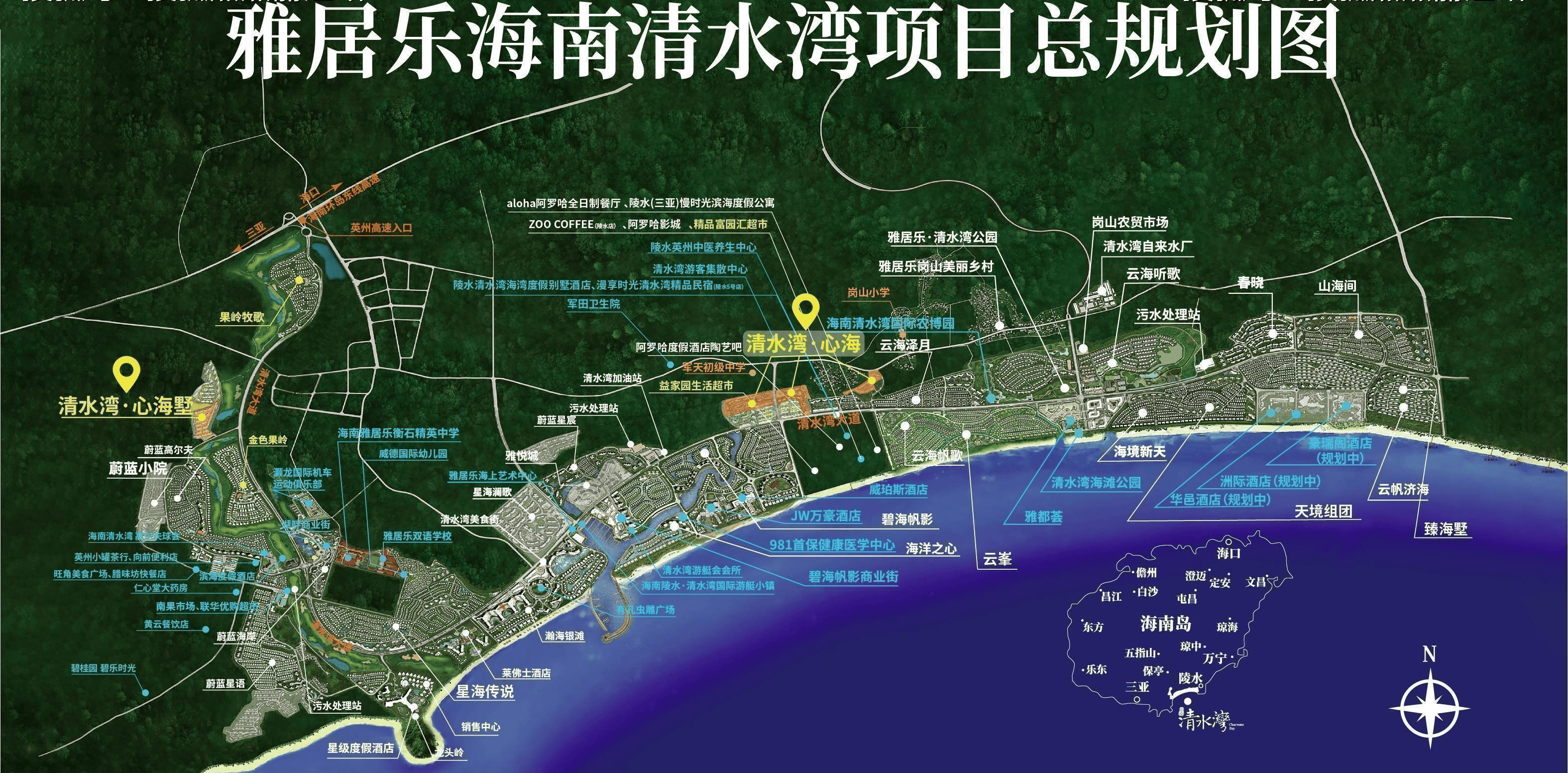 地块位居12公里清水湾海岸线中间位置,可享受整个清水湾配套资源,依托投入使用的游艇会滨海商业、瀚海银滩美食街、环球东榕美食广场三大核心商圈,如崇光超市、无印良品、美食街、阿罗哈商业街等商业配套,是难得的醇熟海居生活圈。