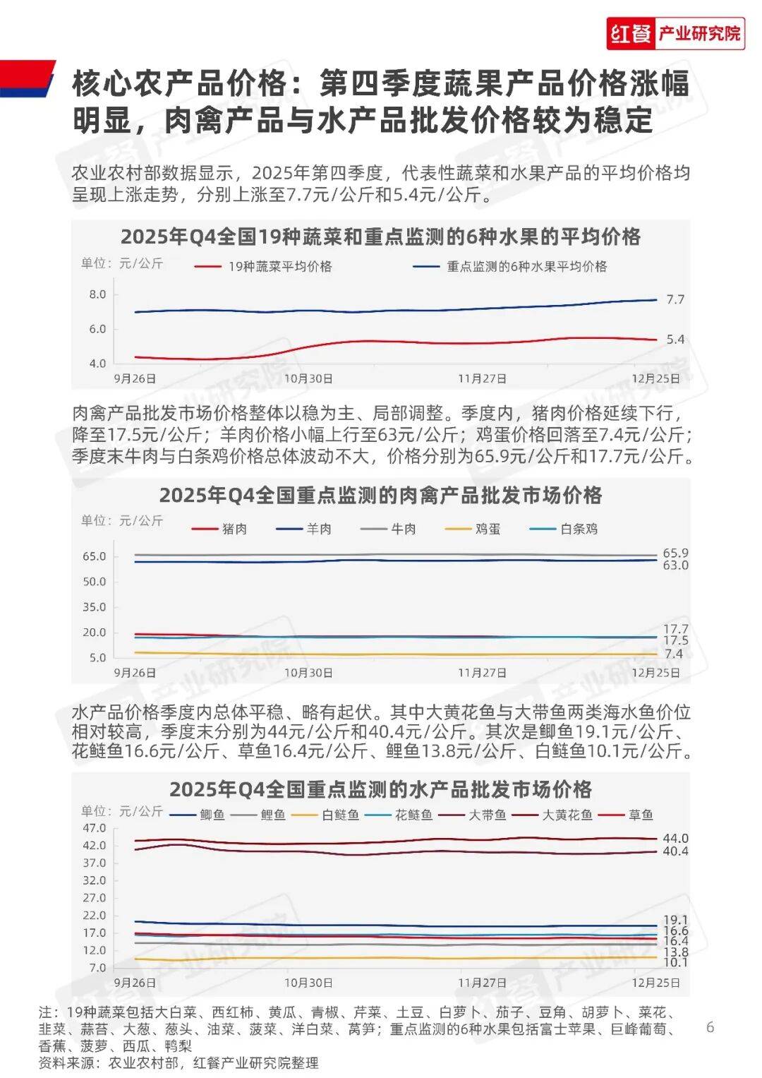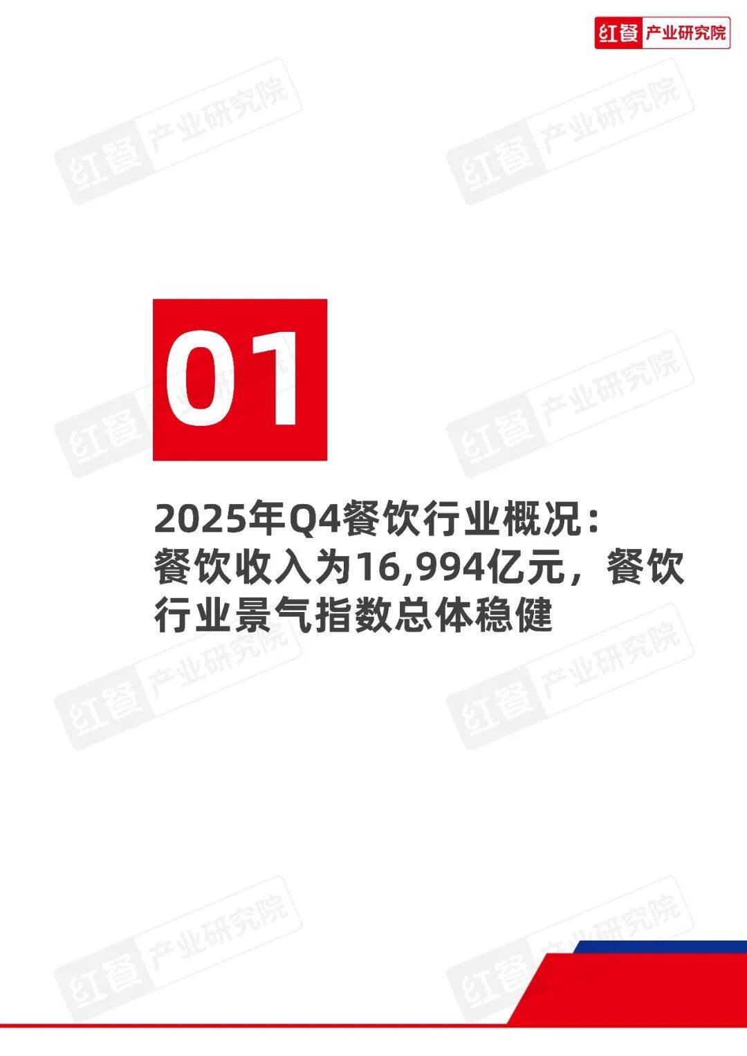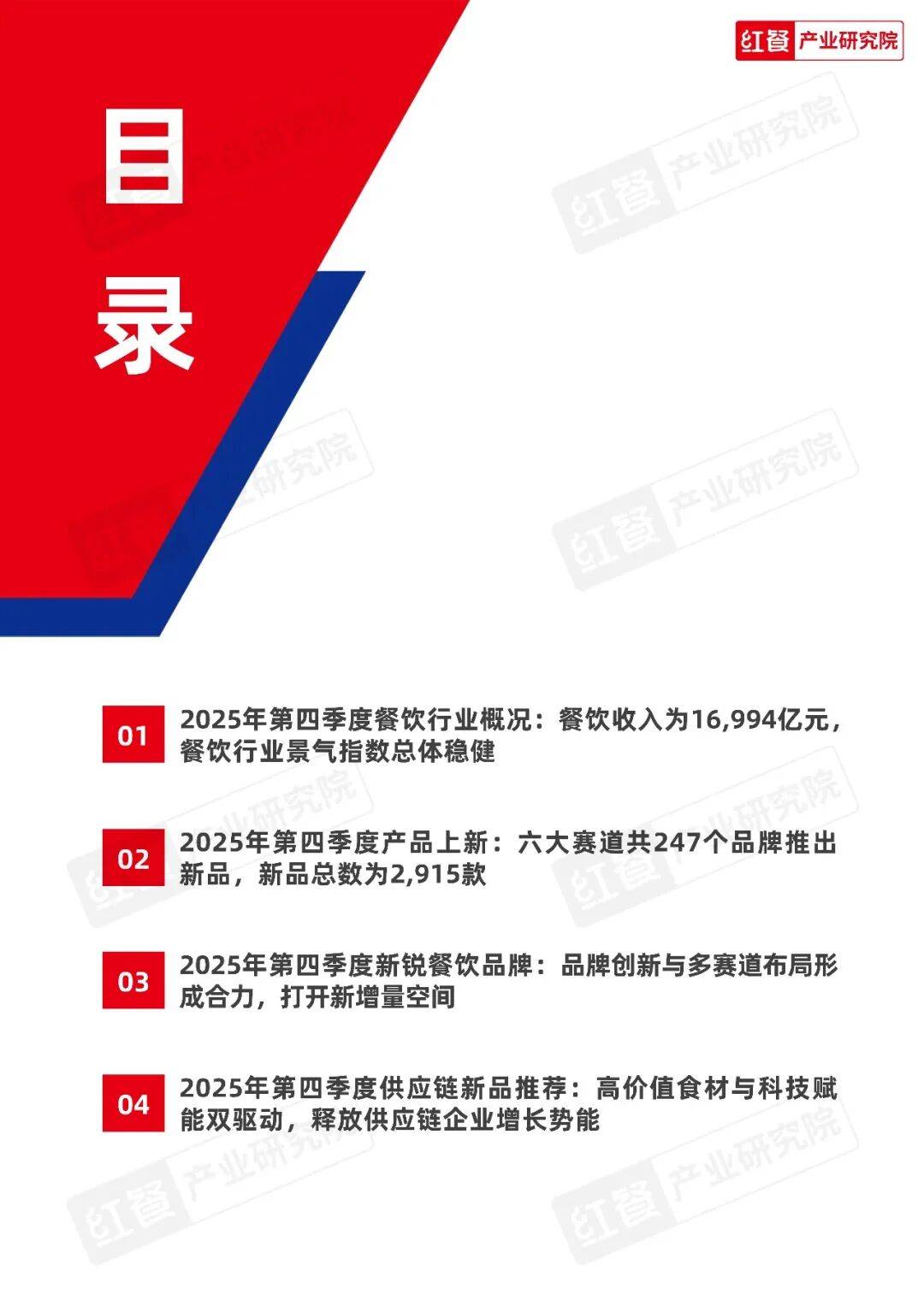 2025年餐饮收入57982亿元,Q4收入16994亿元,增速逐月回落但高于社零,行业景气指数总体稳健,国庆、年末需求支撑明显。食材价格上行,蔬果涨幅大,肉禽水产稳。餐饮企业注册量下降,存量扩张,增长转向存量运营。重点赛道中火锅景气,烧烤波动,现制饮品、火锅门店增长。