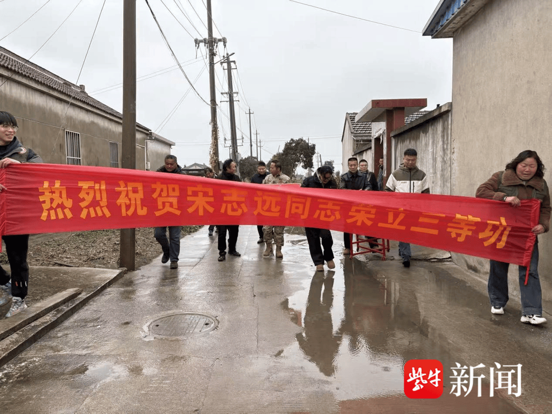2 月 6 日上午,由盐都区退役军人事务管理局、盐城大纵湖旅游度假区及相关村(社区)组成的送喜报小组,先后前往镜湖村、平湖居委会,为立功受奖的现役军人王华、宋志远、宋健家属送上立功喜报,佩戴光荣绶带,让军人军属共享荣光时刻,营造 “一人立功、全家光荣、全社会尊崇”的浓厚氛围。