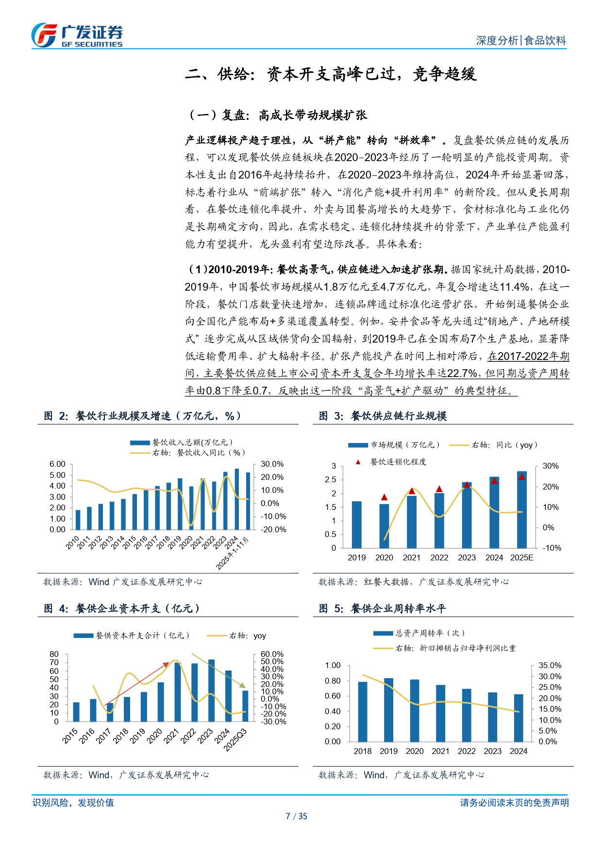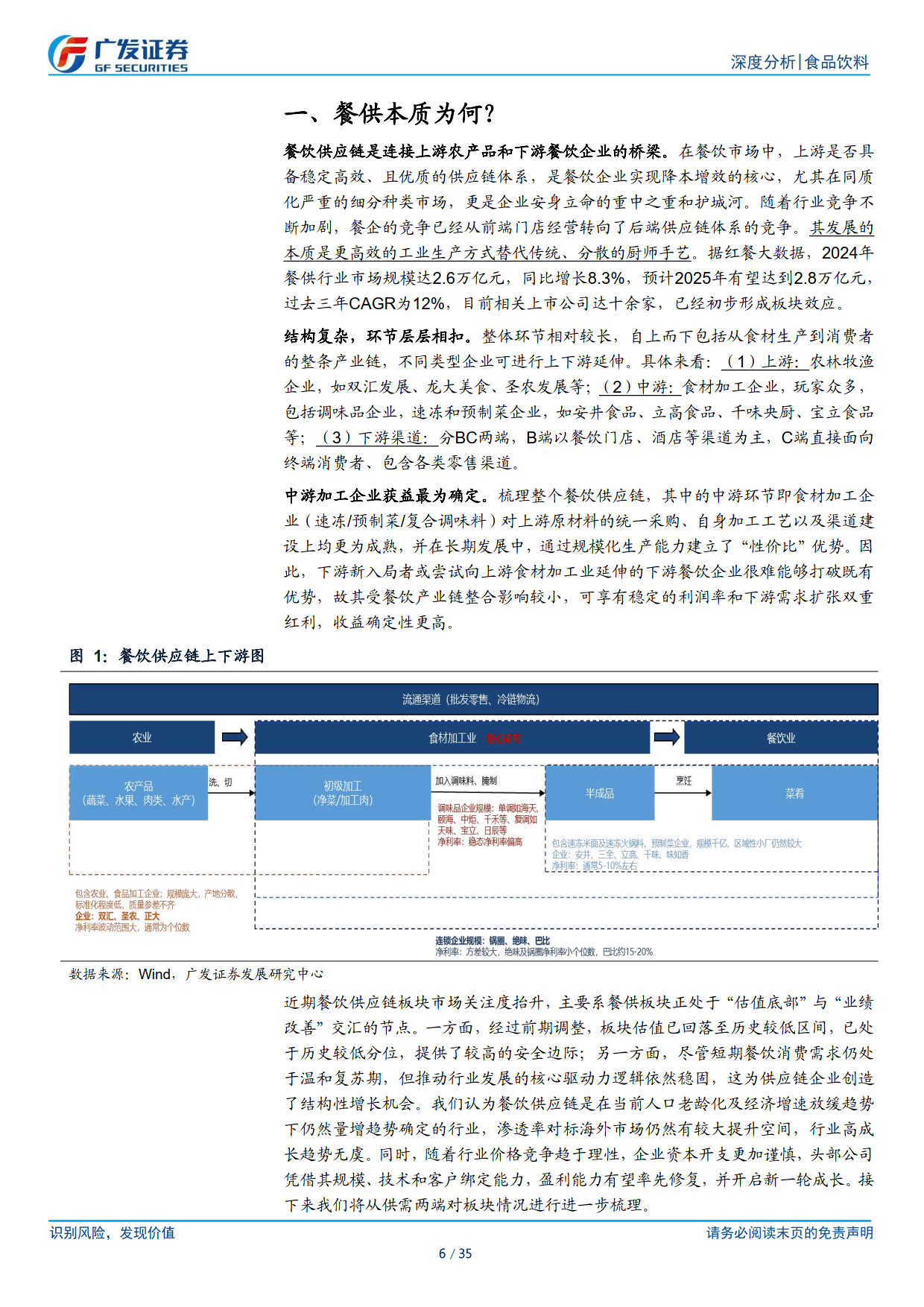餐饮供应链是连接农产品与餐饮企业的核心桥梁,2024 年市场规模达 2.6 万亿元,预计 2025 年将达 2.8 万亿元,过去三年 CAGR 为 12%。行业已完成规模扩张周期,进入以效率、品质为核心的质量升级阶段,资本开支高峰已过,价格战趋缓,竞争格局持续优化。板块当前估值处于历史低位,机构持仓低配,安全边际较高,叠加 2025 年 10 月 CPI 同比转正带来的消费复苏预期,有望实现业绩与估值双重提振。