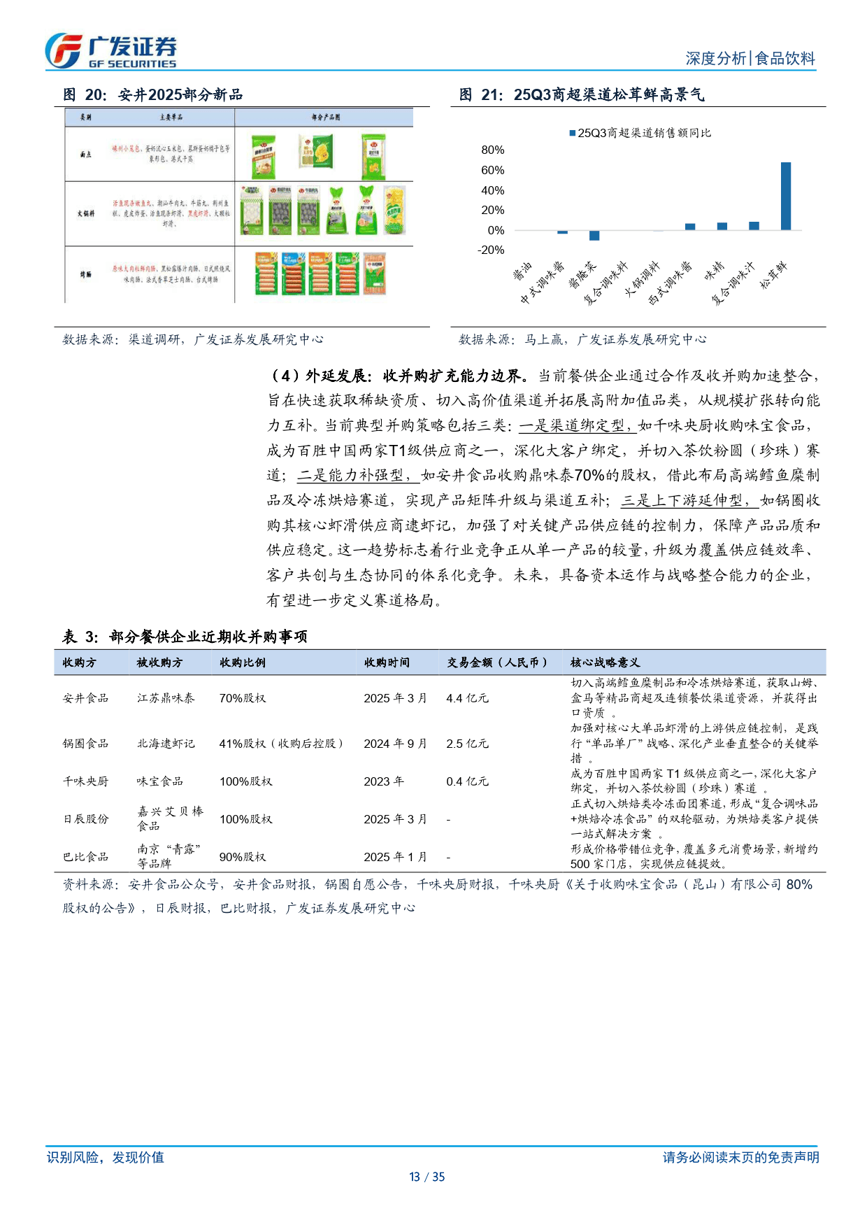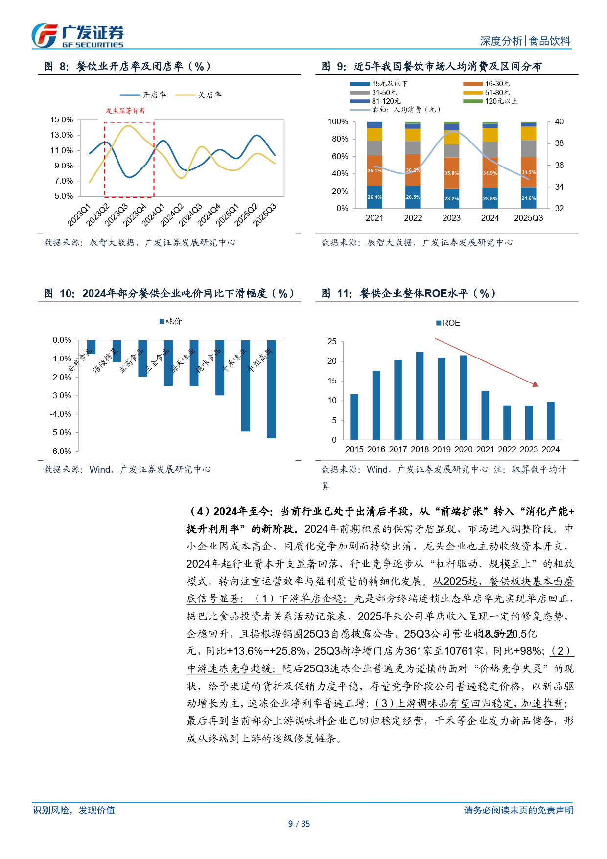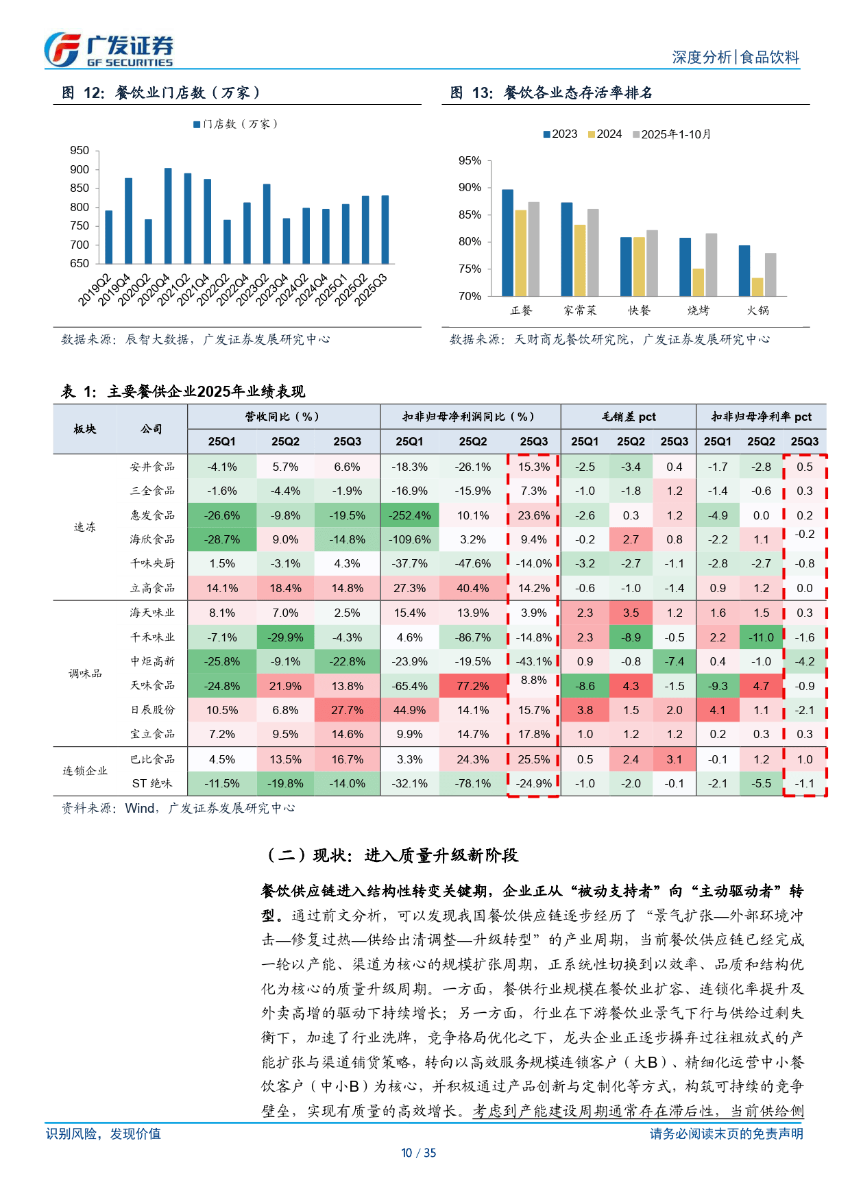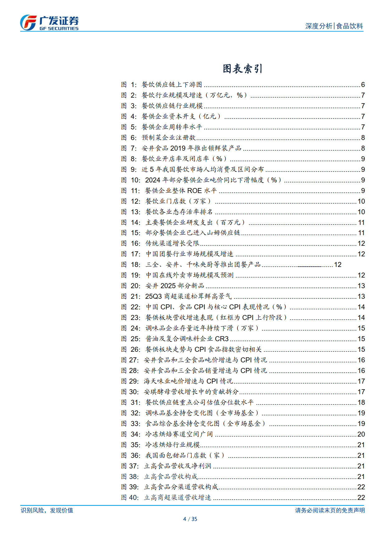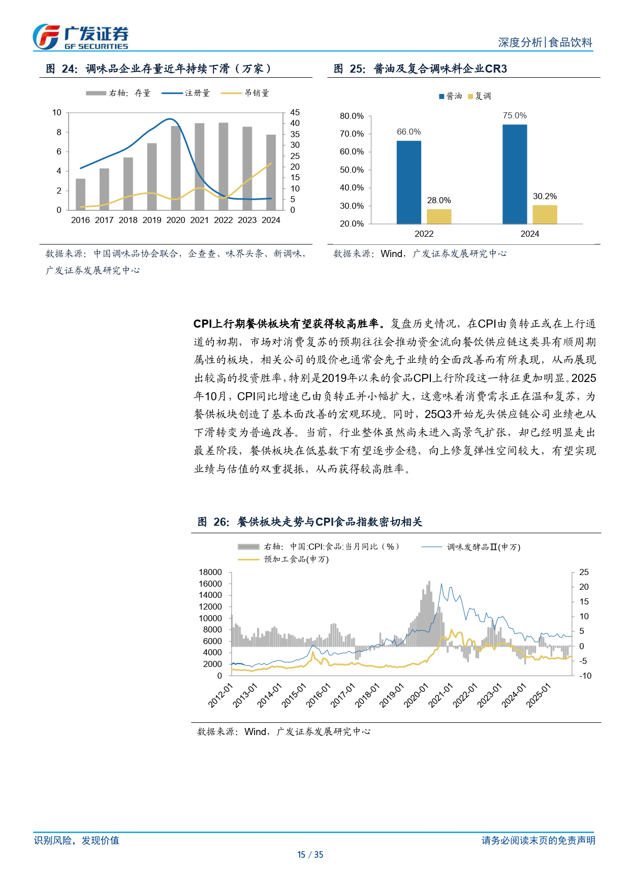 行业与 CPI 趋势共振,顺周期属性显著,CPI 上行期居民外出就餐意愿增强,企业推新成功率与消费者尝试意愿提升。25Q3 起龙头企业业绩普遍改善,下游餐饮单店收入企稳,速冻行业竞争趋缓,调味品企业经营回归稳定,形成从终端到上游的逐级修复链条。龙头企业凭借规模、品牌与多渠道优势,在中小企业出清过程中持续提升市场份额,马太效应凸显。