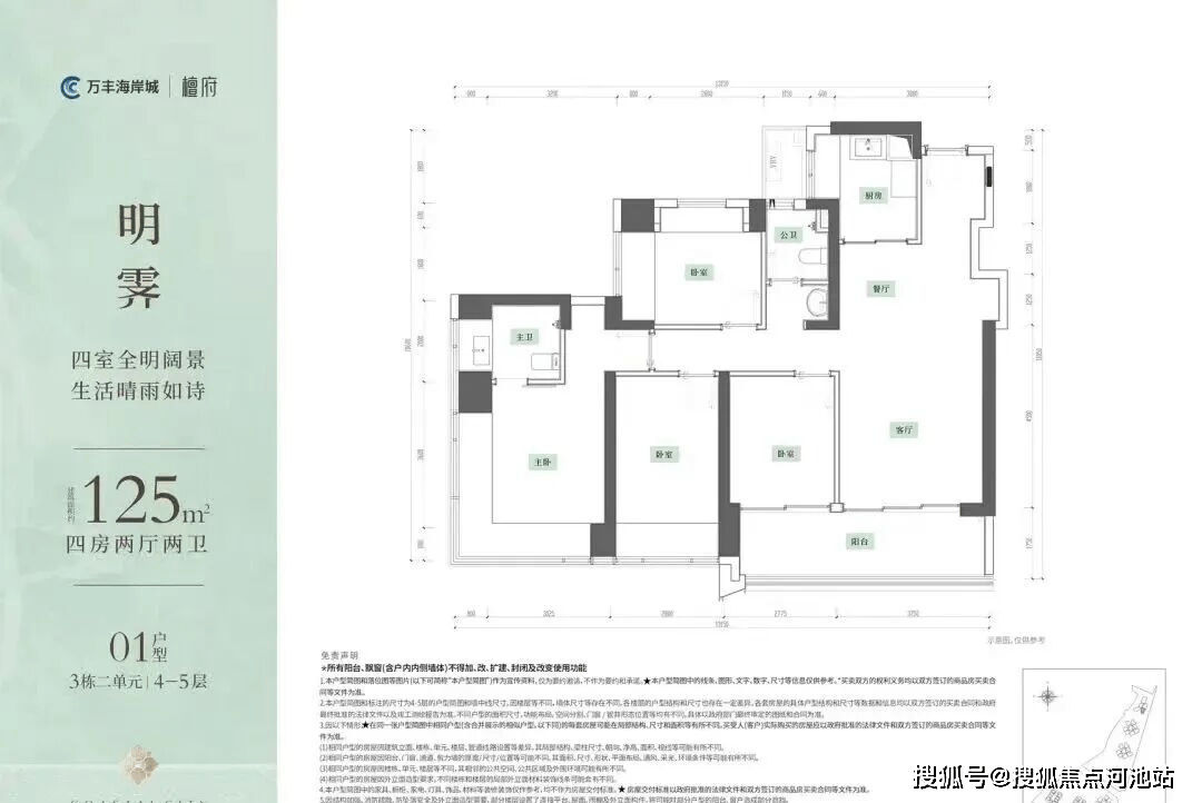 本次推售的万丰海岸城檀府(北地块),总占地面积约1.89万㎡,总建筑面积约17.96万㎡,计容建筑面积约12.87万㎡,容积率6.79,绿化率40%,共由4栋46-47层住宅组成,其中3栋1单元/2栋2单元商品房45层,3栋2单元商品房46层,2栋1单元47层,规划1所12班幼儿园。