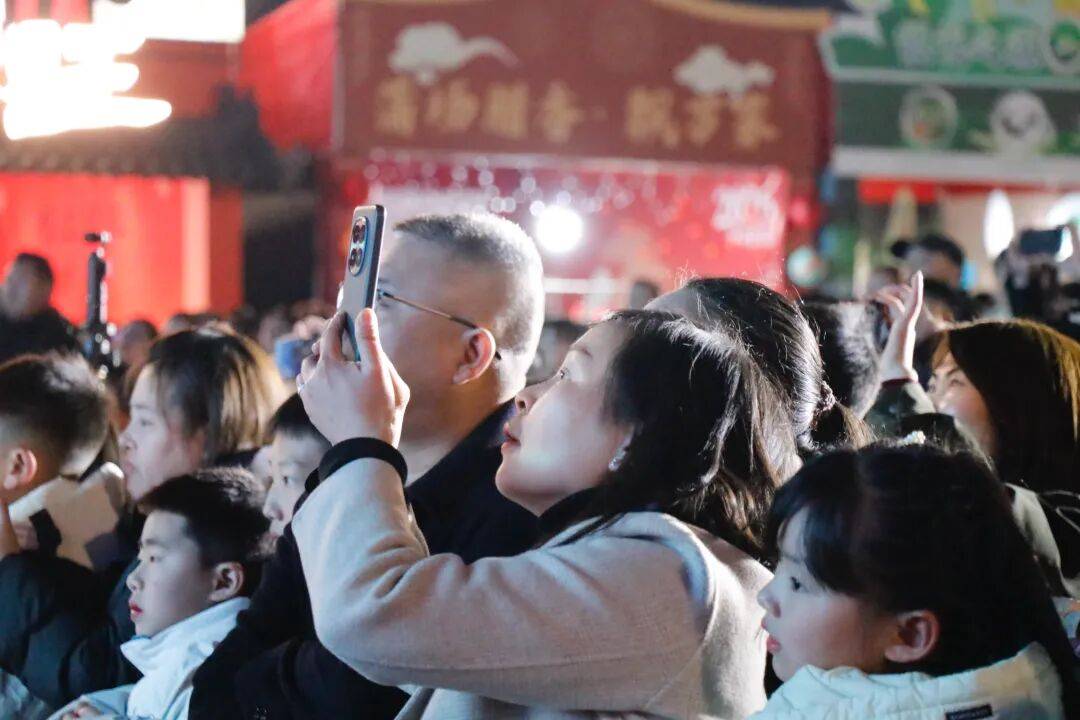 伴随着热烈的氛围与期盼的目光,晚上七点整,新春音乐会准时奏响华章,经典旋律与流行乐声交织回荡,瞬间点燃了现场氛围。诗乡广场内座无虚席、人头攒动,人们或围坐聆听、或驻足观赏,纷纷拿起手机记录美好瞬间,欢声笑语、掌声喝彩声此起彼伏,整个广场一片欢腾,浓郁的新春气息扑面而来。
