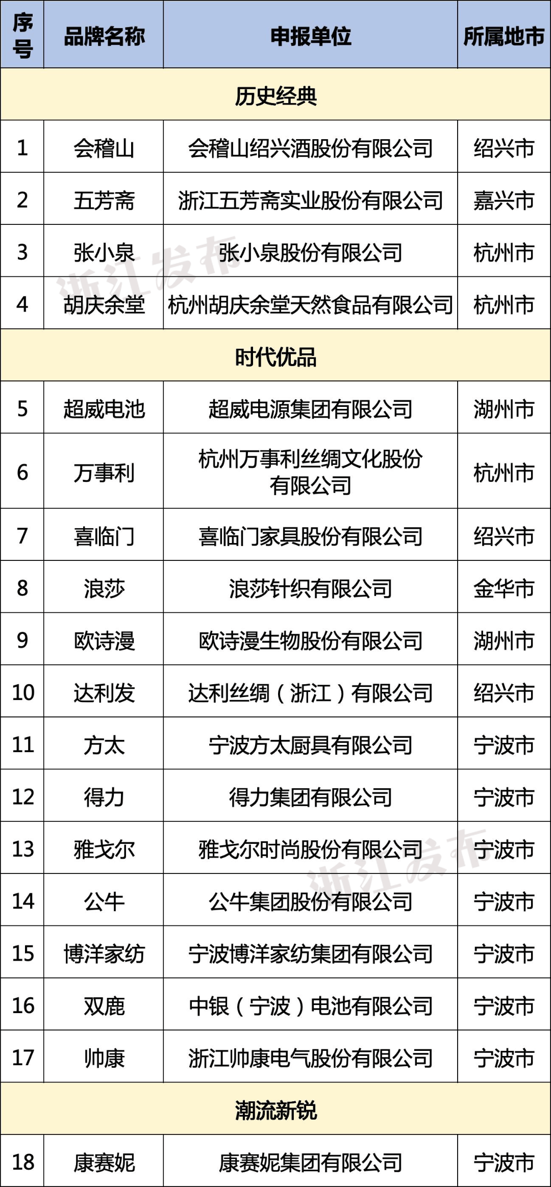浙江此次入选的消费名品