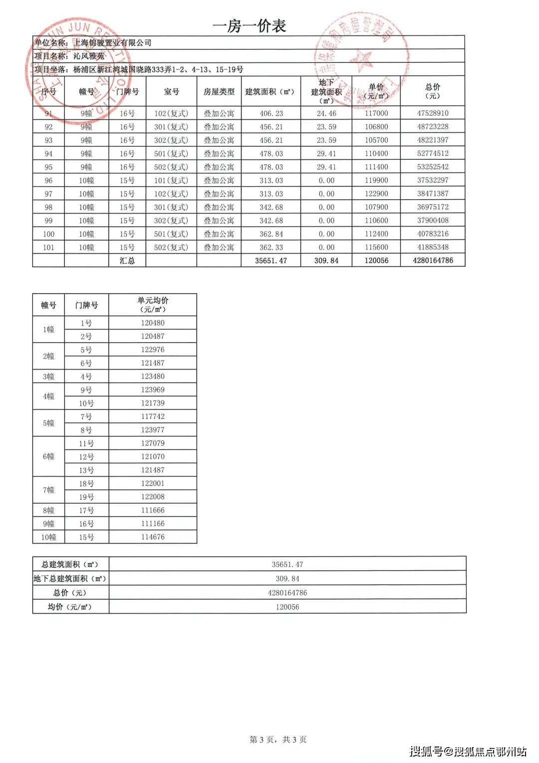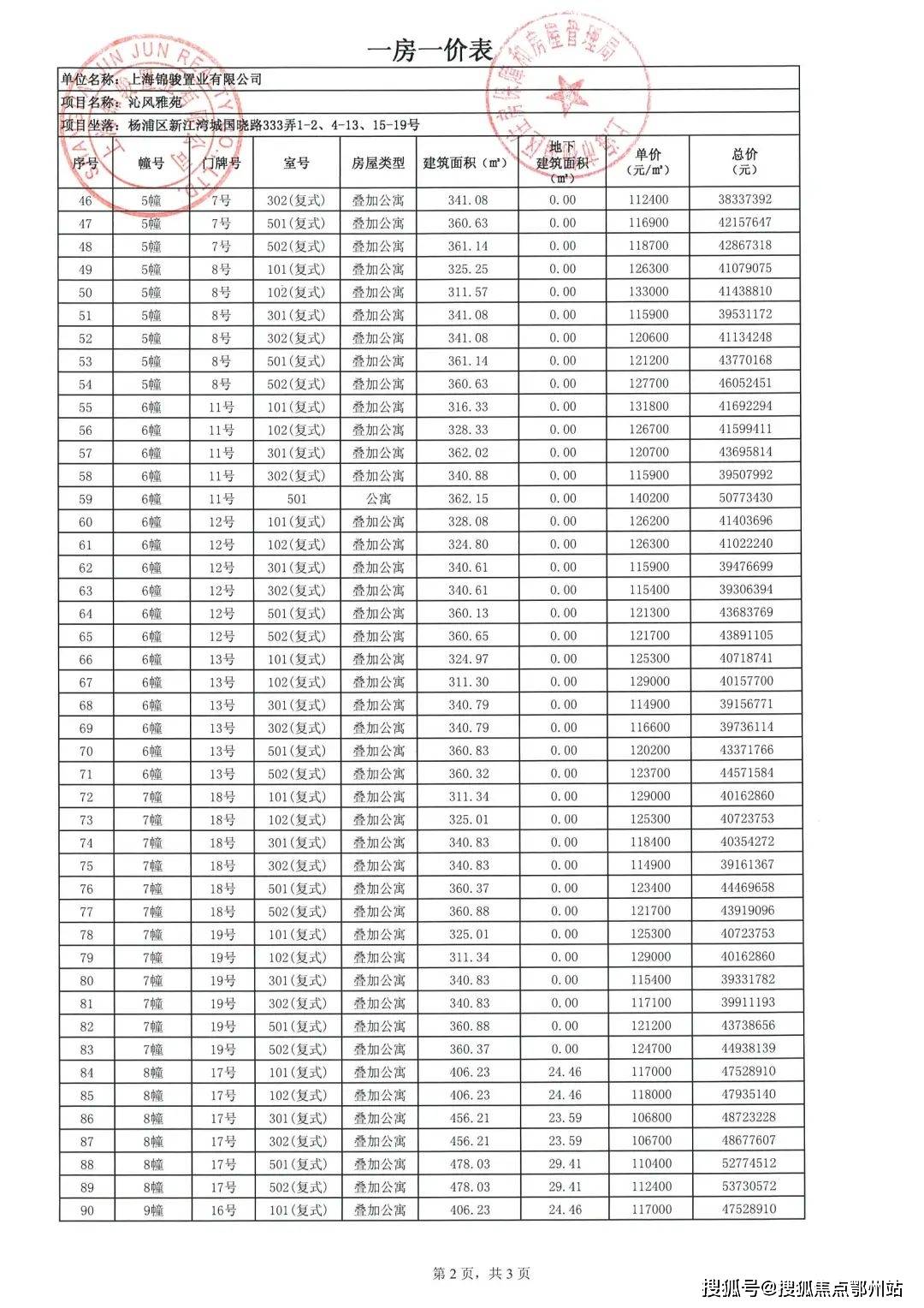 沁风雅苑一房一价表