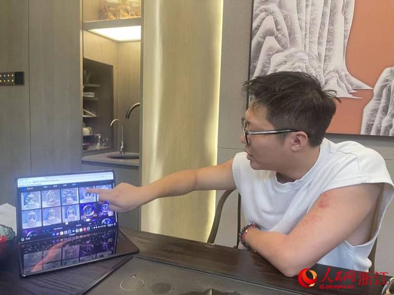 黄子轩展示AI生成的手串图片。人民网记者 王丽玮摄
