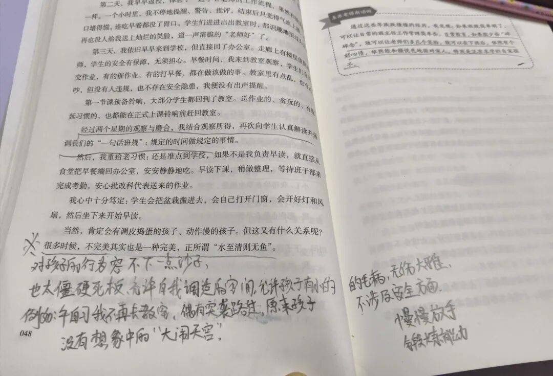 三是践行与反思。读完您“优雅管理”的章节,第二天早读我便改变做法:不再唠叨催促,而是自己拿一本书,一边在教室里转悠,一边静静看书。